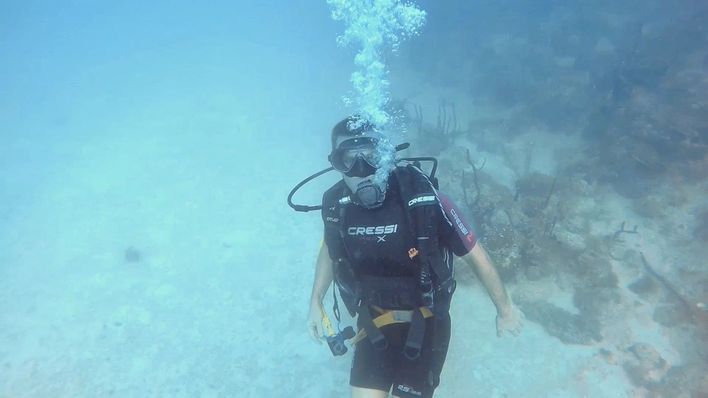 Entrare in acqua dopo tanto tempo è stato immediato, naturale. Appena inizi a respirare dall’erogatore, tutto rallenta. I pensieri si abbassano di volume, il corpo si rilassa e resta solo il mare. È una sensazione pacifica, profonda, che ogni volta mi ricorda perché il diving per me non è solo un’attività, ma un vero equilibrio.