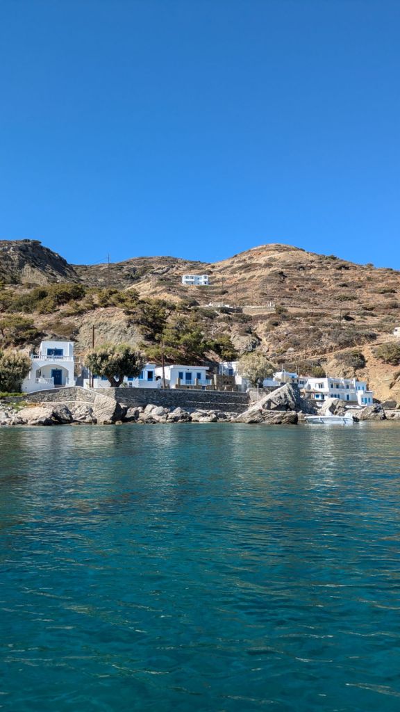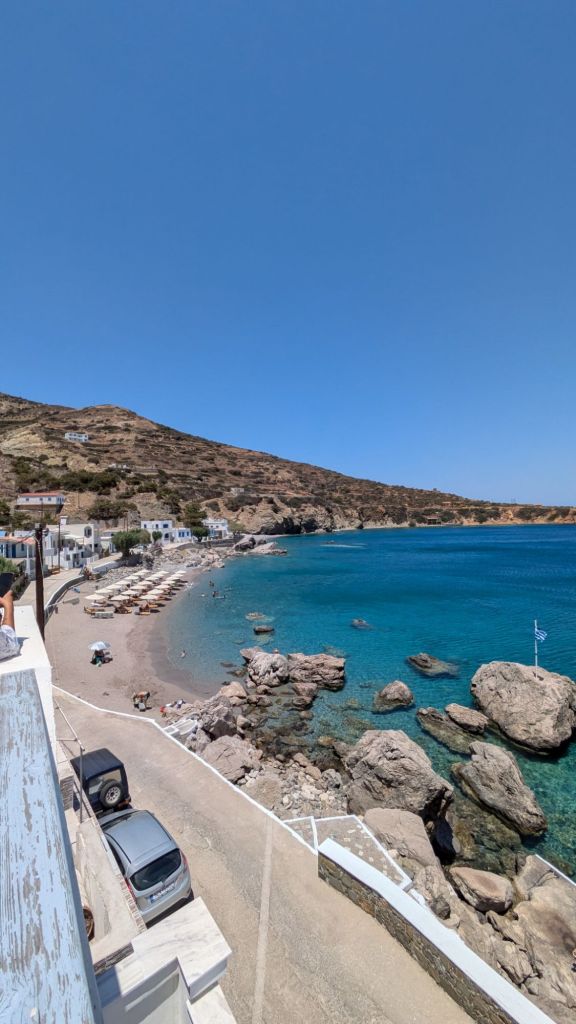 Agios Nikolaos si trova a circa 8 km a sud-est del villaggio di Spoa. La strada che conduce alla spiaggia è panoramica e offre vedute spettacolari sul paesaggio collinare e sul mare sottostante. La spiaggia è facilmente accessibile in auto o in scooter, con un parcheggio gratuito nelle vicinanze. Grazie alla sua vicinanza al villaggio di Spoa, è una tappa ideale per chi desidera una pausa di relax durante un tour dell’isola.