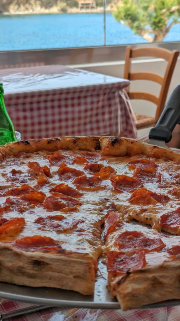 A breve distanza dalla spiaggia si trovano alcune taverne a conduzione familiare che offrono piatti tipici della cucina greca. Qui si possono gustare prelibatezze a base di pesce fresco, accompagnate da insalate locali e prodotti tipici di Karpathos. Pranzare con vista sul mare, assaporando le specialità del luogo, è un’esperienza che rende la giornata ancora più piacevole. Sicuramente da menzionare la taverna “Porto Bello”, pizza tra le migliori di karpathos, pesce fresco pescato dal proprietario e ottima cucina in generale.