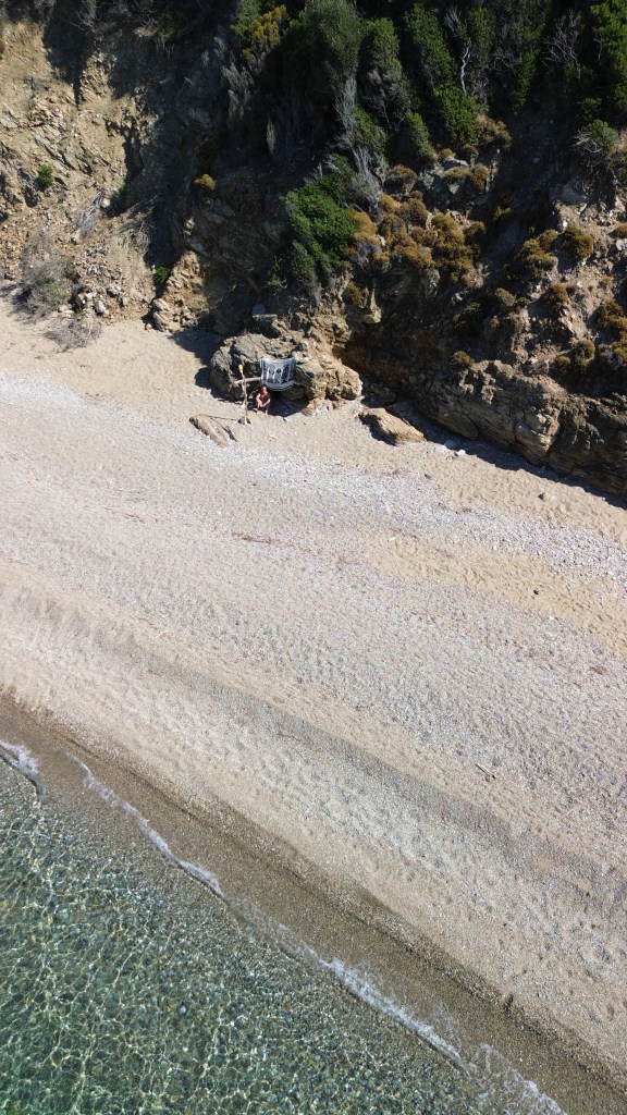 Megalos Aselinos è una spiaggia che ti mostra un lato diverso di Skiathos. Si trova sul versante nord-ovest dell’isola, a circa dieci chilometri dalla Chora, e già la strada per arrivarci è un piccolo viaggio: curve tra pini e ulivi, scorci sul mare e quella sensazione di stare andando verso un posto speciale. Quando arrivi capisci subito che qui l’atmosfera non è la stessa delle spiagge più famose. La sabbia è più grossolana, il mare è profondo e spesso mosso per via dei venti del nord. Non è la classica baia perfetta per famiglie, ma un luogo che affascina chi ama i paesaggi un po’ selvaggi e sinceri. C’è una parte attrezzata con lettini e una taverna direttamente sulla spiaggia, semplice ma ideale per una pausa davanti al mare. Il resto rimane libero, così puoi scegliere se vivere la comodità o stenderti in un angolo tranquillo. Se hai voglia di esplorare ancora, da qui partono sentieri che portano a calette più piccole come Mikros Aselinos. È una spiaggia che consiglio a chi vuole vedere Skiathos fuori dai percorsi più battuti e respirare la sua anima più naturale.