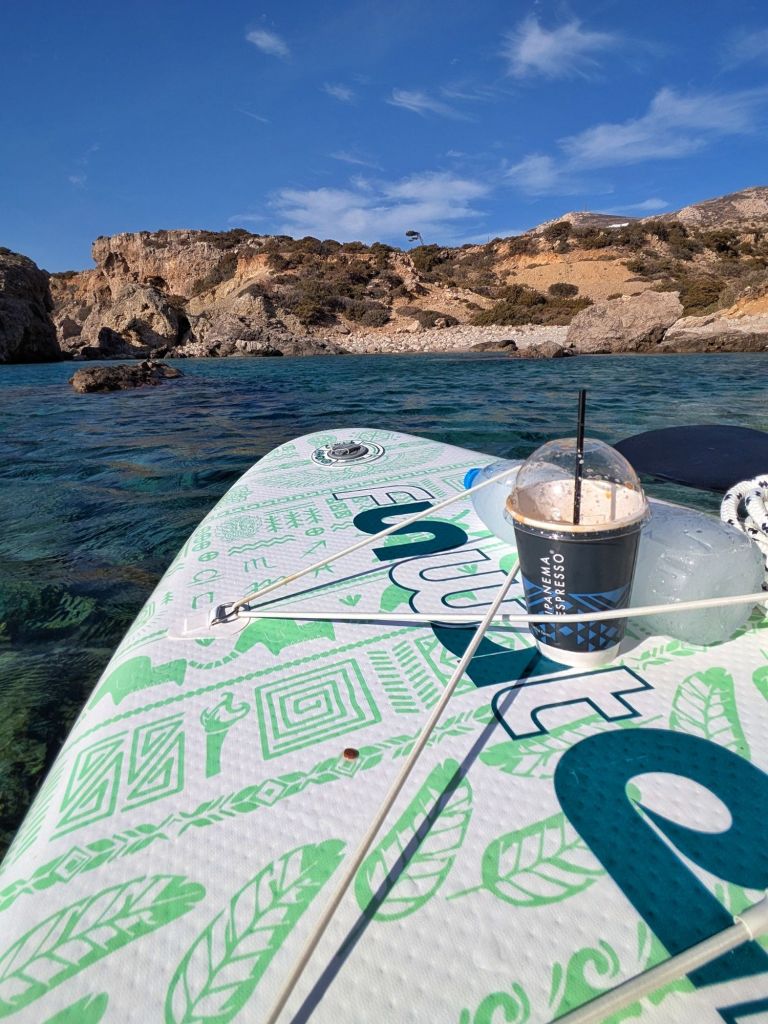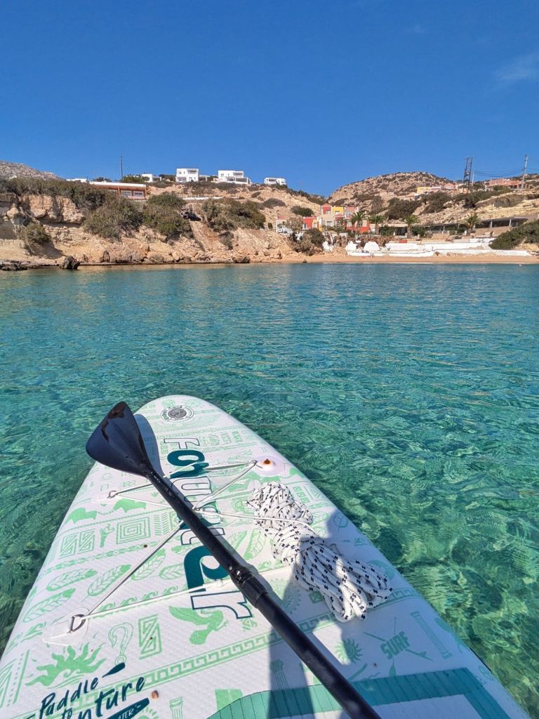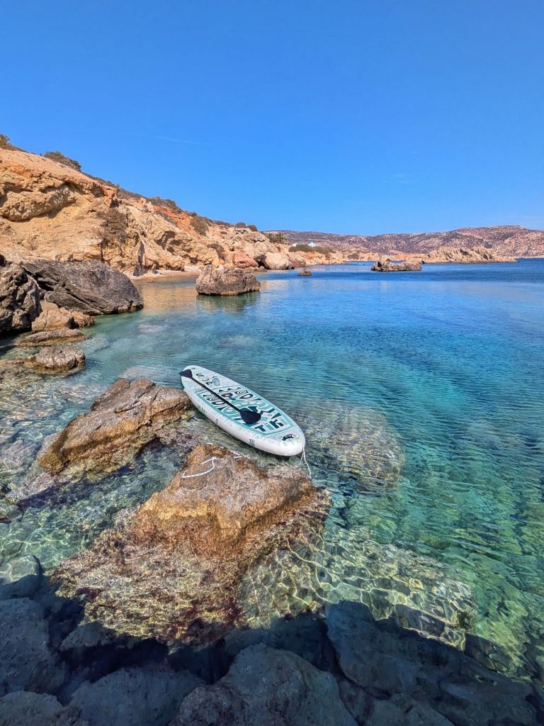 - Relax e Contemplazione: La baia di Votsalakia offre anche la possibilità di rilassarsi sulla tavola, ammirando il paesaggio circostante e lasciandosi cullare dall’acqua calma. Essendo una zona meno frequentata, permette di godere di un’esperienza di SUP quasi in solitudine.