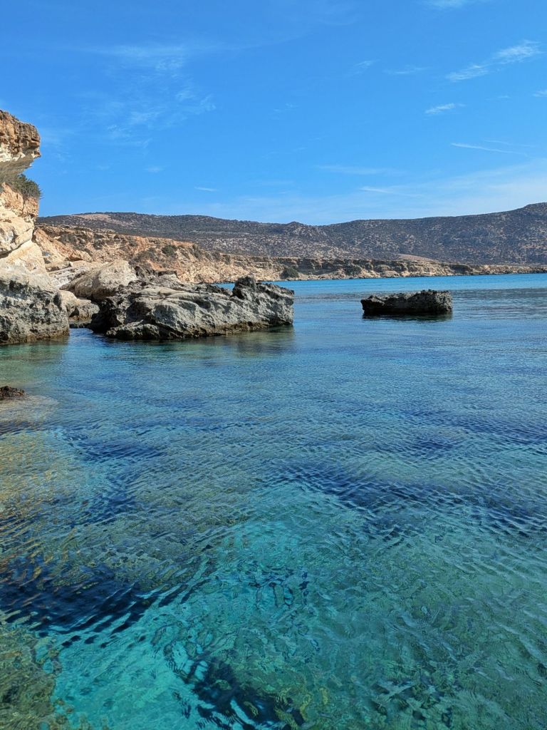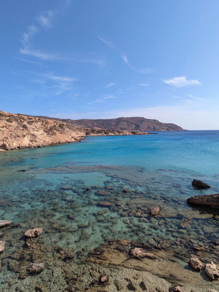Mikri Amoopi, invece, è una piccola baia nascosta che offre un’atmosfera più intima e tranquilla rispetto a Megali Amoopi. Questa spiaggia è composta da ciottoli bianchi e sabbia fine, con un mare incredibilmente limpido e dai colori intensi. Piccola Amoopi è particolarmente apprezzata da chi cerca un ambiente meno affollato e preferisce trascorrere la giornata in totale relax.